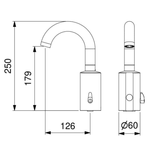 Miscelatore elettronico lavabo serie CURVE a fotocellula, modello 02504/R di Idral, ideale per ambienti moderni e funzionali. Realizzato in ottone cromato con design elegante, è dotato di dispositivo di miscelazione a leva laterale per un controllo semplice e intuitivo. Grazie al comando a fotocellula, l’attivazione avviene automaticamente rilevando la presenza delle mani, mentre la funzione antivandalo interrompe l’erogazione dopo 1 minuto di utilizzo continuo.