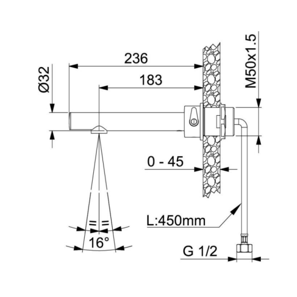 Il miscelatore elettronico serie ONE, modello 02584/R di Idral, è la soluzione ideale per pareti in cartongesso ispezionabili, unendo praticità e design innovativo. Realizzato in ottone cromato, offre un dispositivo di miscelazione con leva laterale regolabile e sistema di limitazione della temperatura massima. Dotato di comando a fotocellula per l’attivazione automatica a rilevamento di presenza, garantisce sicurezza grazie alla chiusura antivandalo dopo 1 minuto di erogazione continua. Include erogazione anti-ristagno automatica ogni 24 ore dall’ultimo utilizzo. Funziona con alimentatore esterno 230V – 6V e offre una portata di 6 l/min con limitatore. Ideale per pressioni di alimentazione tra 1 e 8 bar e temperature da 5 a 70 °C.
