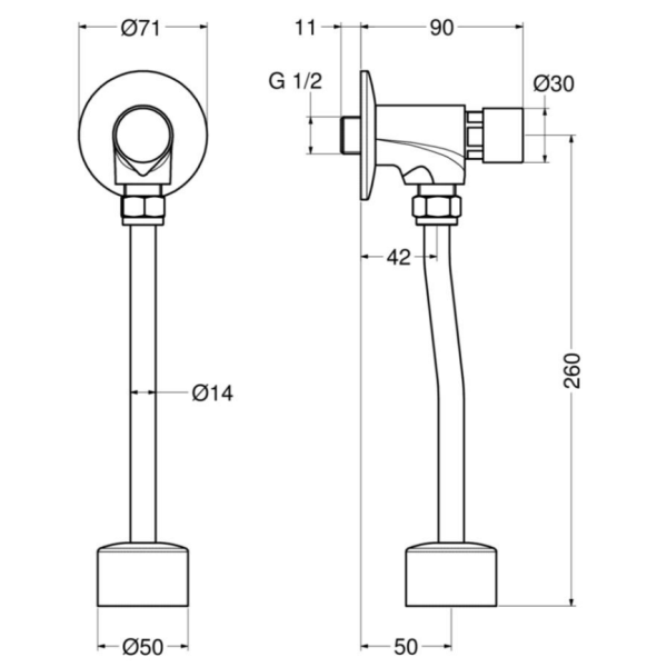 Il Rubinetto temporizzato per orinatoio serie MODERN modello 08120/E di Idral è una soluzione ideale per ambienti pubblici e commerciali. Realizzato in ottone cromato, combina durata e design elegante. Dotato di comando a pulsante, consente un’erogazione pratica e igienica con arresto temporizzato di 8 secondi a 3 bar, non modificabile per garantire un utilizzo controllato e a risparmio idrico. Il rubinetto è completo di tubo da 14 mm e rosone a campana cromato, per una finitura raffinata e funzionale.
