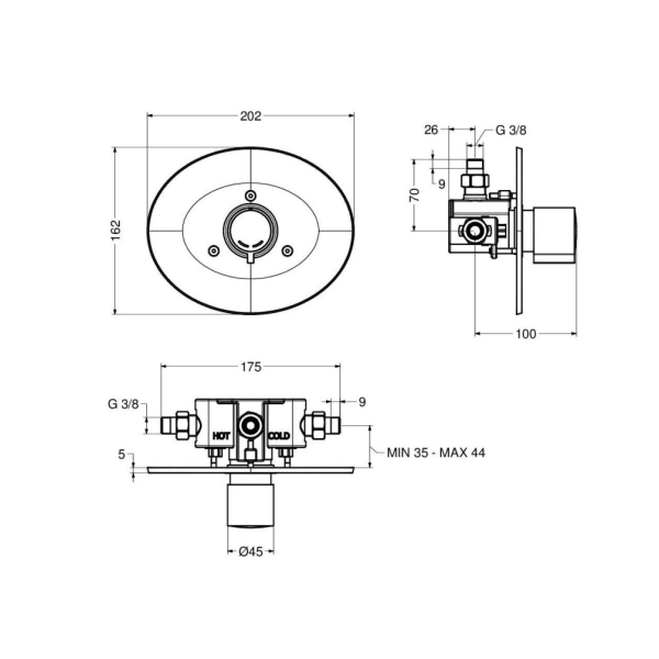 Miscelatore temporizzato doccia serie MINIMAL da incasso a parete, modello 8142 di Idral. Ideale per docce moderne e sostenibili, il miscelatore offre una struttura in ottone cromato resistente e dal design elegante. L’azionamento e la miscelazione sono gestiti tramite una pratica maniglia con comando a pulsante. Grazie all’arresto temporizzato regolabile (15 secondi a 3 bar), garantisce un risparmio idrico ottimale. Include una piastra di copertura in ABS cromato, valvole di ritegno, filtri e un limitatore di portata a 8 l/min.