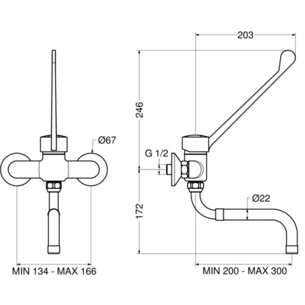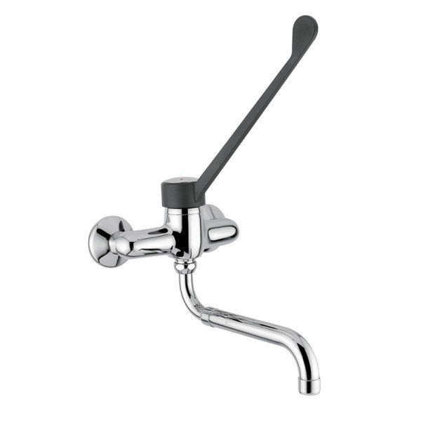 Il Miscelatore monocomando a parete modello 9488 di Idral è una soluzione ideale per ambienti sanitari grazie alla sua bocca girevole estensibile e al comando a leva clinica. Dotato di una cartuccia monocomando a dischi ceramici, garantisce una lunga durata e un controllo preciso del flusso dell’acqua. La bocca di erogazione telescopica, in tubo di ottone D.18, si estende da 200 a 300 mm, offrendo versatilità e comfort. Realizzato in ottone cromato per una resistenza ottimale, la leva clinica in nylon caricato vetro assicura facilità di utilizzo anche in ambienti professionali.