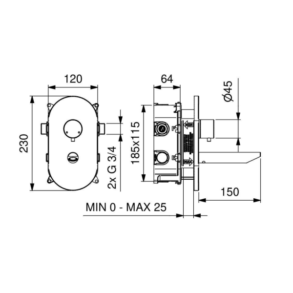 Il Miscelatore termostatico temporizzato lavabo serie 700 da incasso (modello 700.B1/1) di Idral è una soluzione innovativa e funzionale per il tuo bagno. Realizzato in ottone cromato, offre un design elegante e duraturo. La cartuccia termostatica progressiva TMV3 garantisce una regolazione precisa della temperatura dell’acqua, mentre le valvole di ritegno proteggono da eventuali ritorni di flusso. L’incasso regolabile da 0 a 25mm e la scatola in plastica offrono una facile installazione, mentre la piastra di copertura in Zamak cromata con viti a scomparsa assicura un aspetto pulito e rifinito. La bocca di erogazione cilindrica completa questo miscelatore, combinando funzionalità e stile.