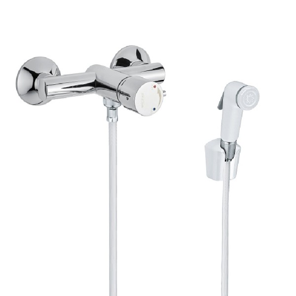 Il miscelatore termostatico esterno a parete 900.24/M di Idral è un rubinetto in ottone cromato, progettato per garantire un’ottima regolazione della temperatura dell’acqua. Dotato di una cartuccia termostatica progressiva TMV3, consente un controllo preciso e sicuro del flusso, proteggendo contro eventuali sbalzi termici improvvisi. Completo di flessibile e doccetta per WC, è ideale per installazioni esterne e offre una valvola di ritegno per evitare ritorni di flusso.