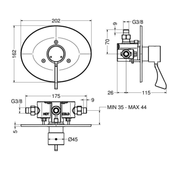 Il miscelatore termostatico progressivo da incasso a parete della Serie 900 di Idral, modello 900.42/1, garantisce massima praticità e sicurezza. Dotato di leva clinica per un comando agevolato, è progettato per un utilizzo intuitivo e accessibile. La cartuccia termostatica progressiva TMV3 assicura un controllo preciso della temperatura, con blocco massimo preimpostato a 38°C, modificabile secondo le necessità. Include valvole di ritegno con limitatore di portata a 9 l/min e filtri integrati per una maggiore efficienza e affidabilità.