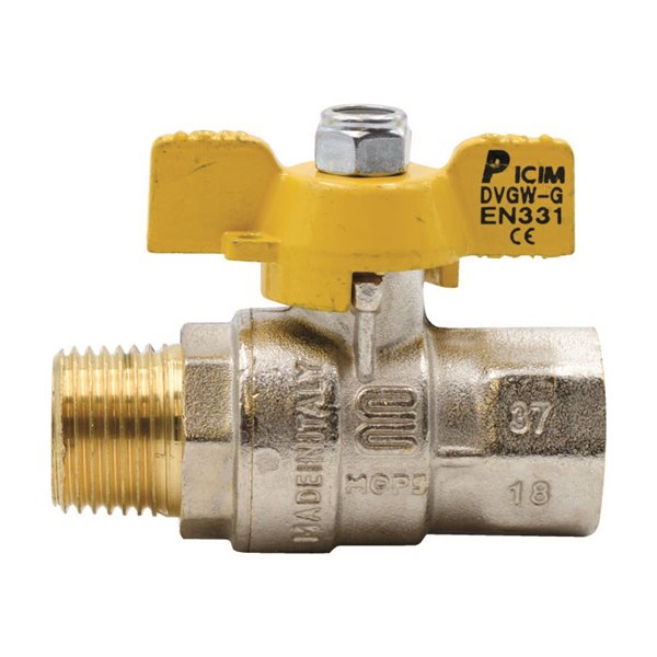 Rubinetto a squadra per gas 3/4"x3/4"mf gialla
