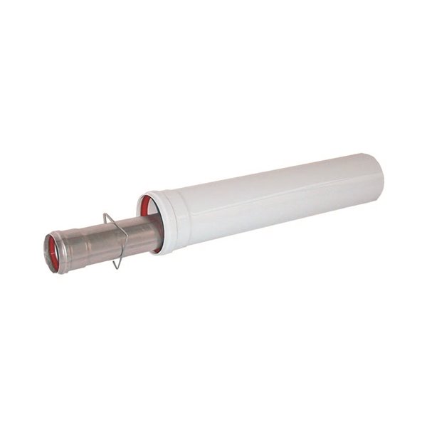 Prolunga coassiale maschio-femmina Ø60/100mm lunghezza 1000mm. Tubo interno Ø60mm in polipropilene, tubo esterno Ø100mm in metallo verniciato bianco. Innesto a bicchiere. Per caldaie a condensazione e sistemi fumi/aria.