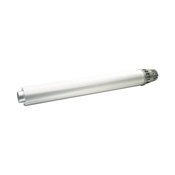 Prolunga coassiale maschio-femmina Ø60/100mm lunghezza 1000mm. Tubo interno Ø60mm in polipropilene, tubo esterno Ø100mm in metallo verniciato bianco. Innesto a bicchiere. Per caldaie a condensazione e sistemi fumi/aria.