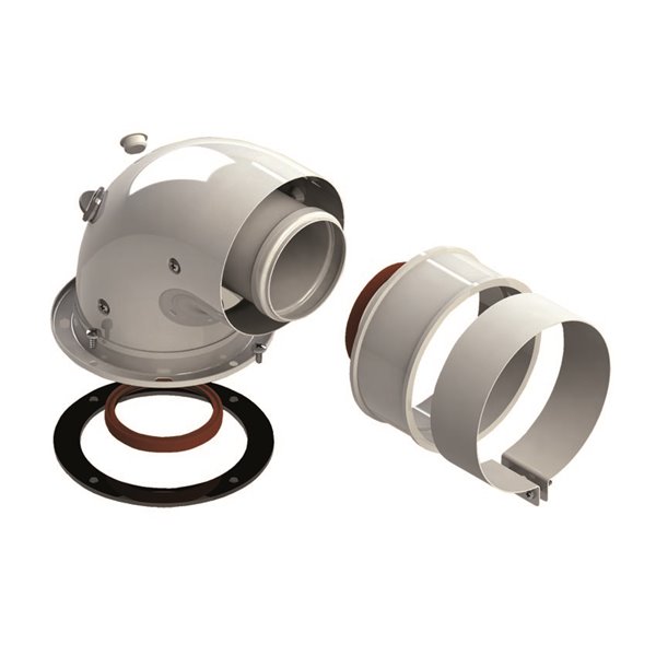 Curva Coassiale 45° Ø 60/100 in Alluminio Verniciato Bianco – Con Manicotto e Fascetta – Codice 106937