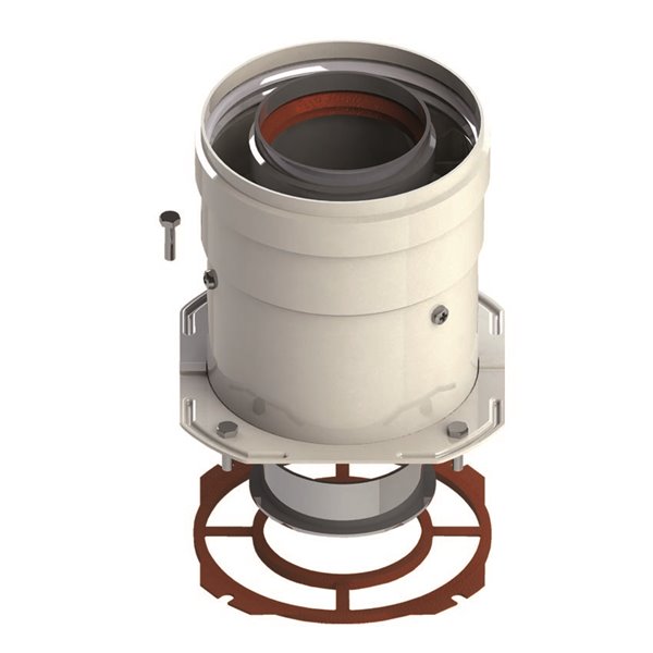 Tronchetto di partenza coassiale con flangia Ø60/100mm. Tubo interno Ø60mm in polipropilene (PPS), tubo esterno Ø100mm in metallo verniciato bianco. Adattabile a caldaie BAXI, ROCA, VIESSMANN. Sistema fumi/aria camera stagna.