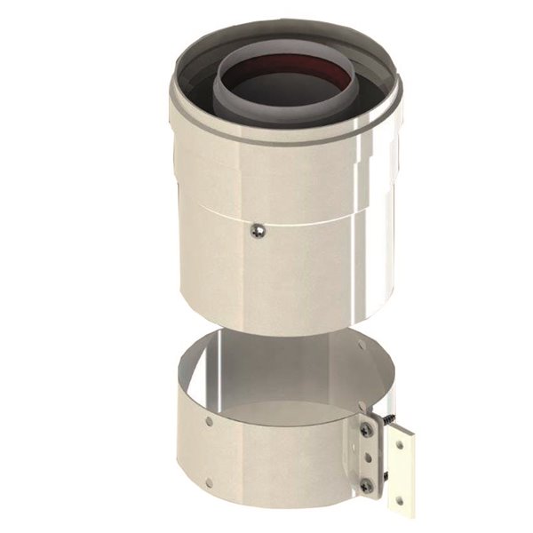 Prolunga coassiale maschio-femmina Ø60/100mm lunghezza 1000mm. Tubo interno Ø60mm in polipropilene, tubo esterno Ø100mm in metallo verniciato bianco. Innesto a bicchiere. Per caldaie a condensazione e sistemi fumi/aria.
