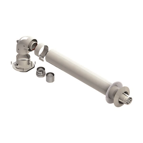 1 tubo da 750 mm con montato un terminale trattato anti U.V. per la funzione di aspirazione e scarico Ø 60/100;