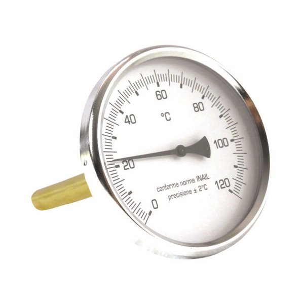 Il termometro bimetallico con attacco posteriore, con scala di temperatura da 0°C a +120°C e diametro del quadrante di 80 mm, è uno strumento di misurazione della temperatura progettato per fornire precisione e affidabilità in una varietà di applicazioni industriali.