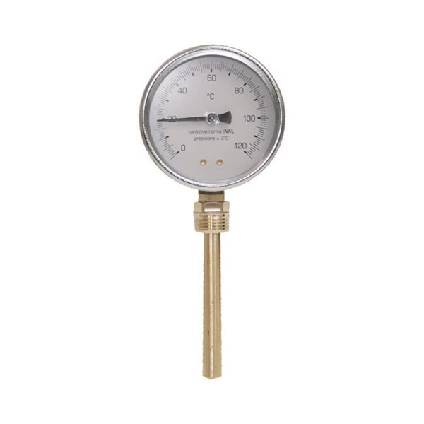 Il termometro bimetallico con attacco posteriore, con scala di temperatura da 0°C a +120°C e diametro del quadrante di 80 mm, è uno strumento di misurazione della temperatura progettato per fornire precisione e affidabilità in una varietà di applicazioni industriali.
