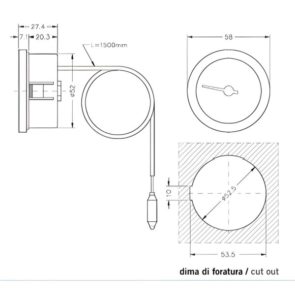 - Tipo: termometro a capillare da cruscotto