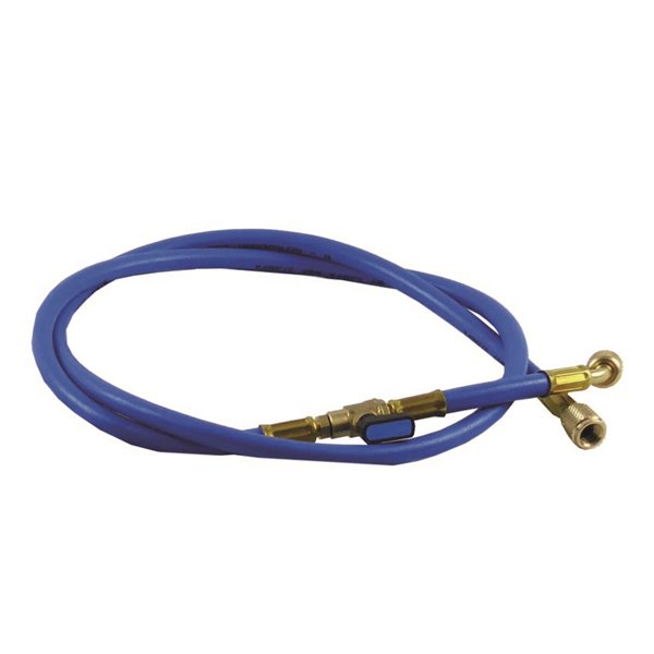Tubo flessibile 1/4" SAE diritto x 1/4" SAE 45° con valvola a sfera intermedia e depressore.