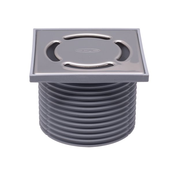 Portagriglia d 110mm/123x123mm, con griglia inox 115x115mm, dispositivo antiodore Primus blue (HL090.5E), O-ring e copertura quadra per cantiere. Altezza totale 90mm.