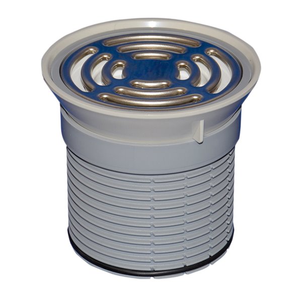 Portagriglia da incastro per pavimentazioni in PVC e cauciù di spessore 1 - 4 mm, incl. dispositivo antiodore e griglia rotonda inox