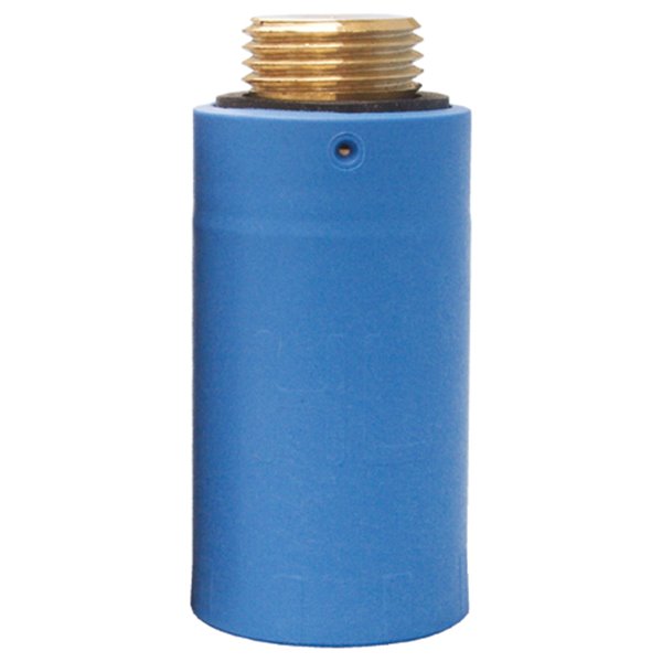 Tappo di protezione conforme à DIN 1988/2 con filetto di ottone R 1/2 " , foro à sfiato, resistente à pressione fino à 15 bar. Auto-impermeabile con giunto piano. Con incassatura esagonale massiccia SW12. Colore blu.