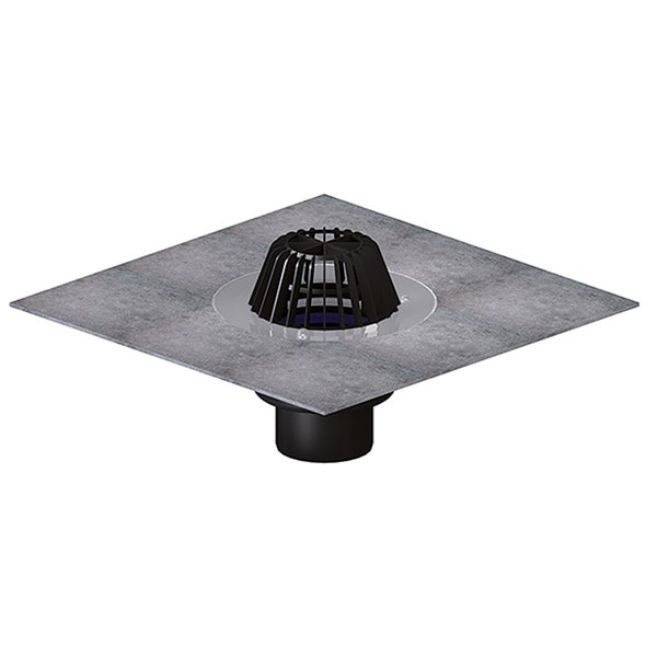 Scarico terrazzi DN110, griglia plastica raccoglifoglie, foglio bitumato saldato