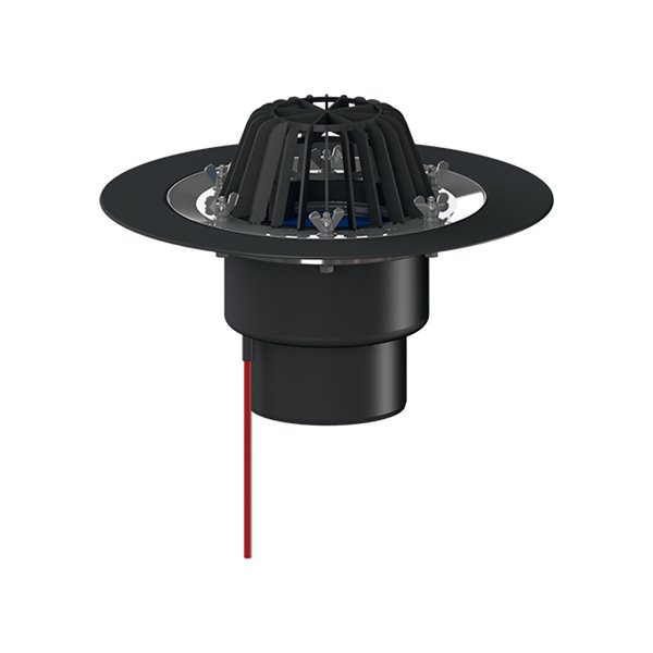 Scarico terrazzi DN125, sistema di fissaggio per impermeabilizzazione, griglia plastica raccoglifoglie, dispositivo di riscaldam