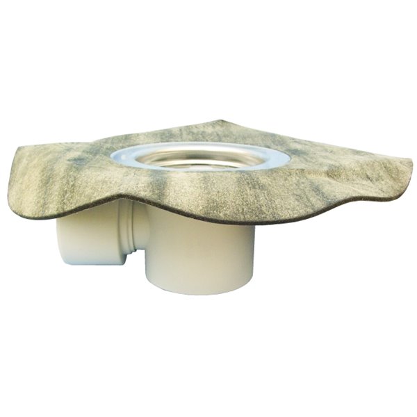 Scarico DN75 orizzontale a pavimento con manicotto bituminoso diam 500 mm ideale per l'allacciamento con lastre isolanti bituminose, sifone antiodore e sportello di ispezione. Livello chiusura sifone: 60 mm. La confezione contiene anche il coperchio di protezione per il montaggio