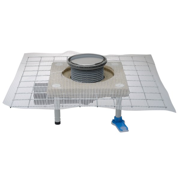 Scarico per pavimento e terrazzo DN50/75 „Cera Drain“ con collare in cemento polimerico regolabile in altezza, adatto per impermeabilizzazioni alternative specialmente per l’incollaggio con pavimentazioni ceramiche , scarico regolabile da orizzontale a verticale , dispositivo antiodore a prova di prosciugamento, prolunga accorciabile 0 - 53 mm / 100 x 100 mm e piastra tonda in acciaio diam. 112 mm. Protezione di montaggio compresa nella confezione. Le impermeabilizzazioni CeraDrain sono la soluzione ideale nelle moderne pavimentazioni a basso spessore. Il collare in cemento polimerico, grazie alle viti di regolazione, viene inserito in modo tale che la posa del cemento faccia presa direttamente sul collare.la griglia fa presa nel cemento ed evita movimenti indesiderati. Durante la posa del materiale isolante, viene inserita anche una lastra in fibra di vetro come ulteriore rinforzo nell’allacciamento del corpo al pavimento. La prolunga non ha piu funzione di impermeabilizzante (basta silicone!) e lo scarico e per sempre isolato!