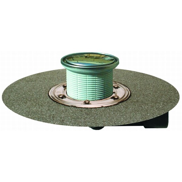 Scarico terrazzi e balconi DN50/75, antiodore antiriflusso antigelo, foglio bitumato saldato, griglia rotonda d 131mm/ d 112mm