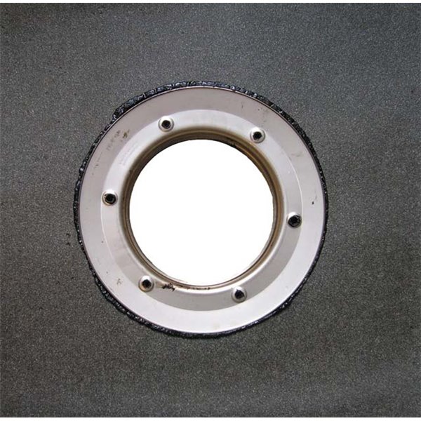 Guarnizione isolante composta da flangia in acciaio 220 x 155 mm, anello isolante in plastica, anello distanziale e manicotto bituminoso diam. 500 mm per llastica, anello distanziale e manicotto bituminoso diam. 500 mm per l'allacciamento a impermeabilizzazioni bituminose. Protezione di montaggio compresa nella confezione.