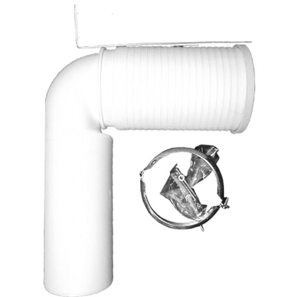 Curva di scarico WC DN110 90° accorciabile, con collare e staffa di fissaggio a parete completa di guarnizione ad innesto