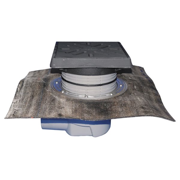Scarico orizzontale 'Perfekt' DN110, foglio bitumato saldato, portagriglia telaio/griglia ghisa 260x260mm/226x226mm, raccoglispo
