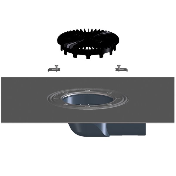 Corpo di scarico per balconi e terrazzi DN75 orizzontale con guaina bituminosa, griglia in plastica ferma-ghiaia compresa nella fornitura