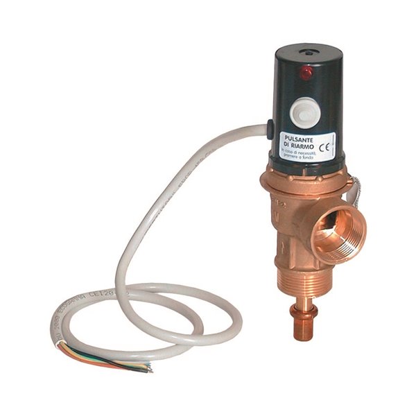Al raggiungimento della temperatura di richiusura la valvola si richiude automaticamente. La valvola consente l'apertura dello scarico anche in caso di anomalia della sonda capillare (azione positiva)